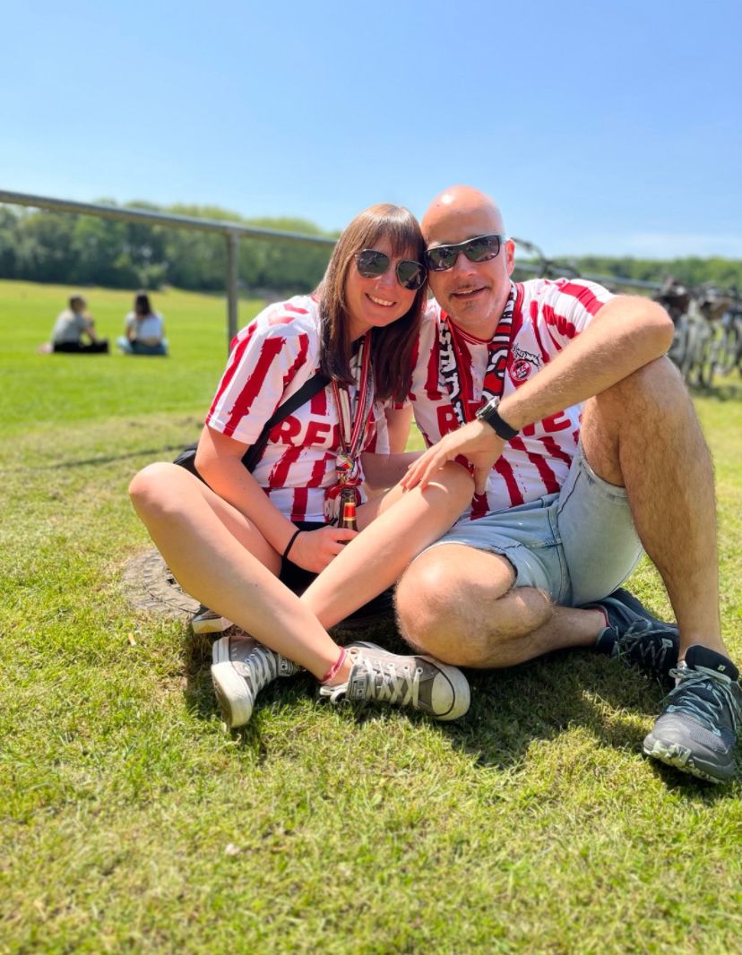 Als ich dich das erste Mal mit zum FC in die Südkurve genommen habe und du kurz nach Anpfiff auf dem Zaun standest und gerufen hast: „Pyrotechnik ist kein Verbrechen“, wusste ich, dass du die Richtige bist. Dein Feuer, deine Leidenschaft und dein großes Herz machen mein Leben komplett – und ich möchte keinen einzigen Meter mehr ohne dich gehen.