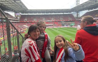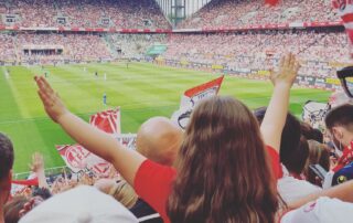 Schon bald merkten wir, dass wir mehr gemeinsam hatten, als wir je erwartet hätten. Unsere Farben? Rot und Weiß. Der FC Köln hat uns nicht nur als Fans zusammengebracht, sondern auch als Team. Unsere erste Auswärtsfahrt nach Nizza war legendär – 3200 Kilometer in 36 Stunden. Wir sind durchgebrannt, genau wie unsere Leidenschaft füreinander.